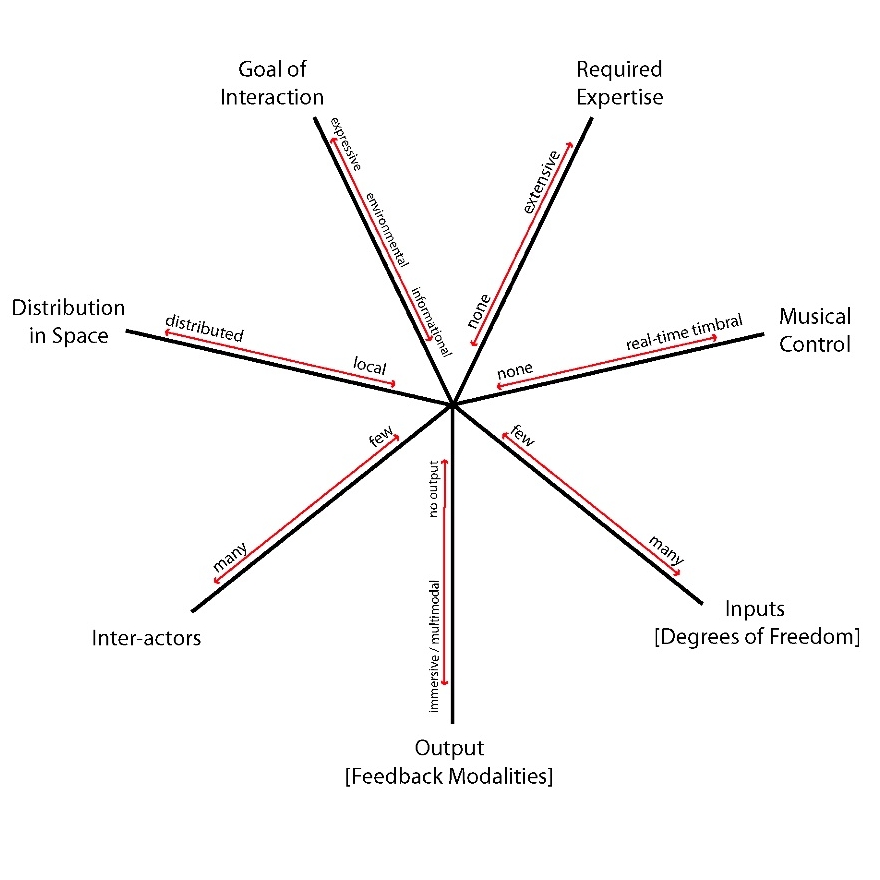 This framework attempts to clarify some of the issues surrounding music interface design. It can be used to analyze and compare existing instruments, guide the design of new ones, or see how instruments could be used in new ways. For details, please read Towards a new conceptual framework for digital musical instruments.